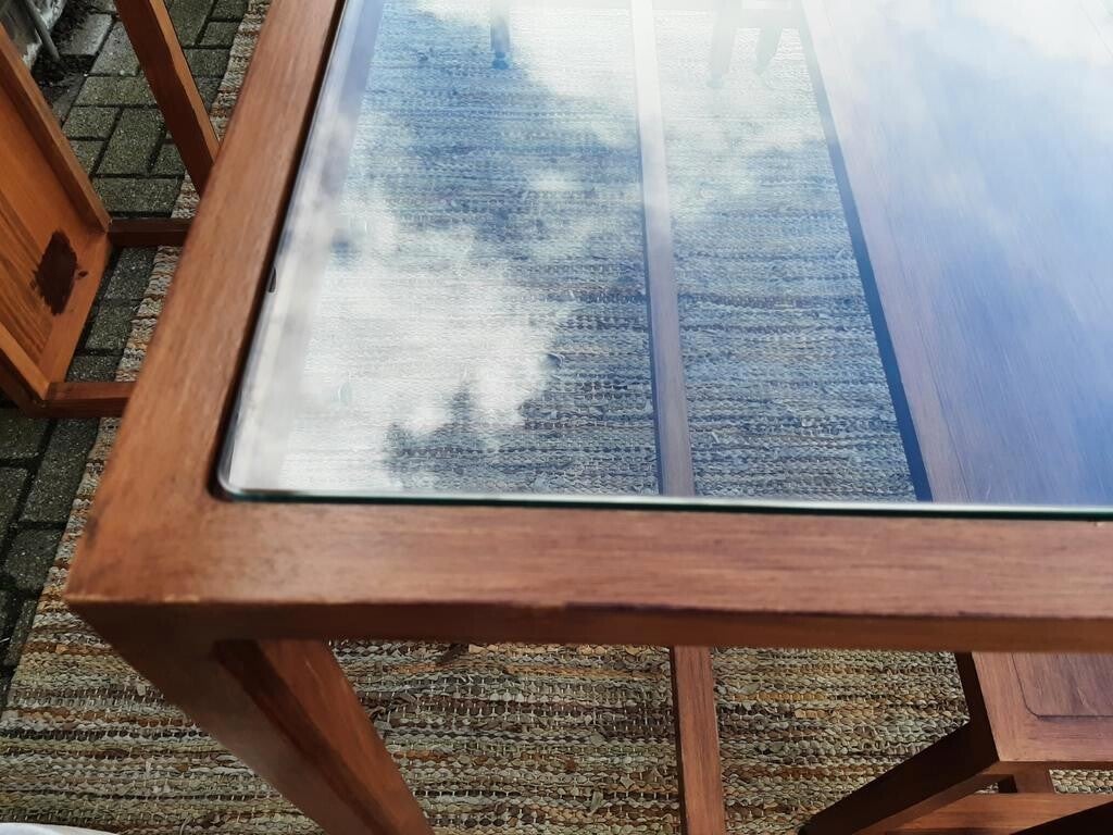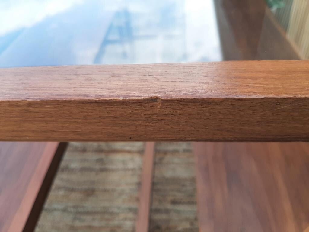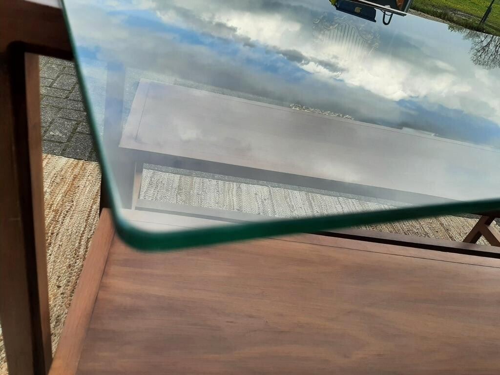 Het glazen tafelblad is mooi dik, geslepen, en heeft afgeronde hoeken. Met minimale krasjes in het glas, moet je dan echt even naar zoeken.